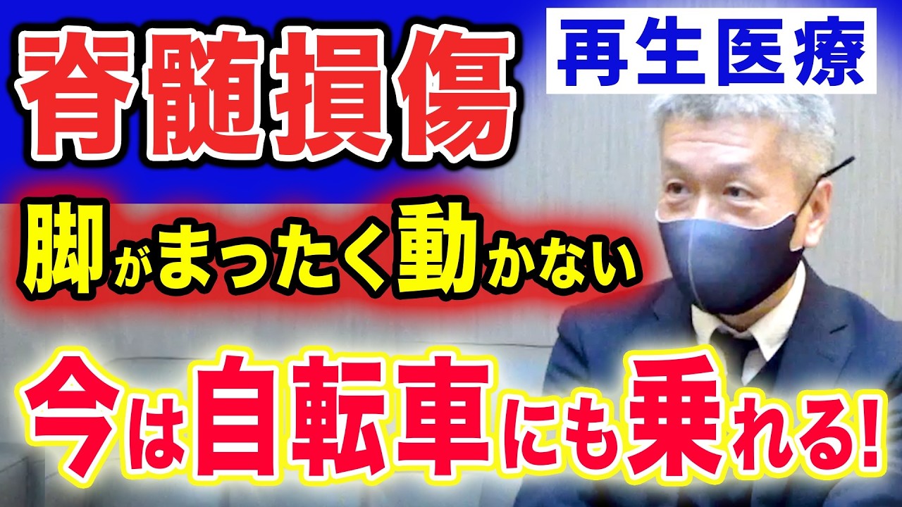 この動画は、突然足が動かなくなり歩行困難に陥った患者様が、幹細胞治療によって劇的に回復し、現在は杖なしで自転車通勤ができるまでに改善した実際の症例インタビューです。