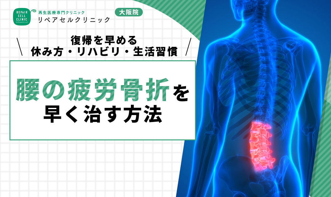 リペアセルクリニック大阪院では、慢性化した腰痛や復帰が進まないケースも含め、状態評価と選択肢の整理を重視し、必要に応じて再生医療の可能性も含めて相談を受け付けています。