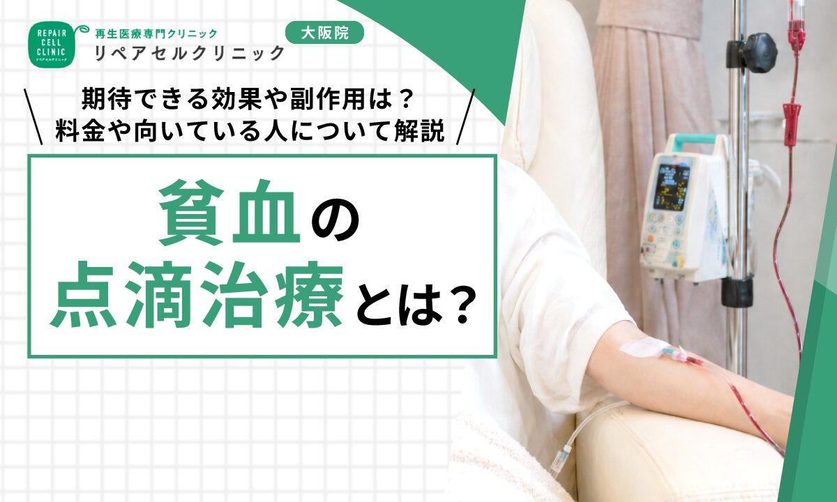 この記事では、貧血の点滴治療の種類・期待できる効果・副作用・料金・向いている人の特徴を詳しく解説します。